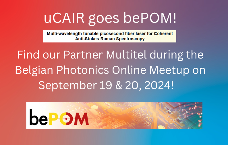 uCAIR partner Multitel presented a poster on “Multi-wavelength tunable picosecond fiber laser for Coherent Anti-Stokes Raman Spectroscopy” during the 5th edition of the Belgian Photonics Online Meetup on 19 and 20 September 2024. The poster was authored by Chloé Colapinto, Florent Défossez, Jean-Bernard Lecourt, and Yves Hernandez.
