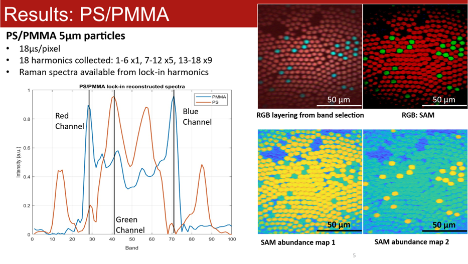 We successfully demonstrated chemically selective imaging of the polymers Polystyrene and PMMA, achieving clear contrast between the two chemical species.